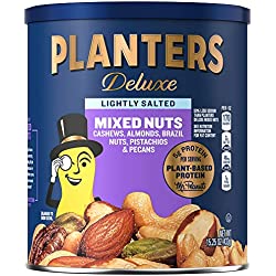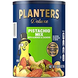 • DELUXE PISTACHIO MIX: Snack smart with PLANTERS Deluxe Pistachio Mix. The mixed nut snack has a satisfying rich taste and contains a mix of pistachios, almonds and cashews