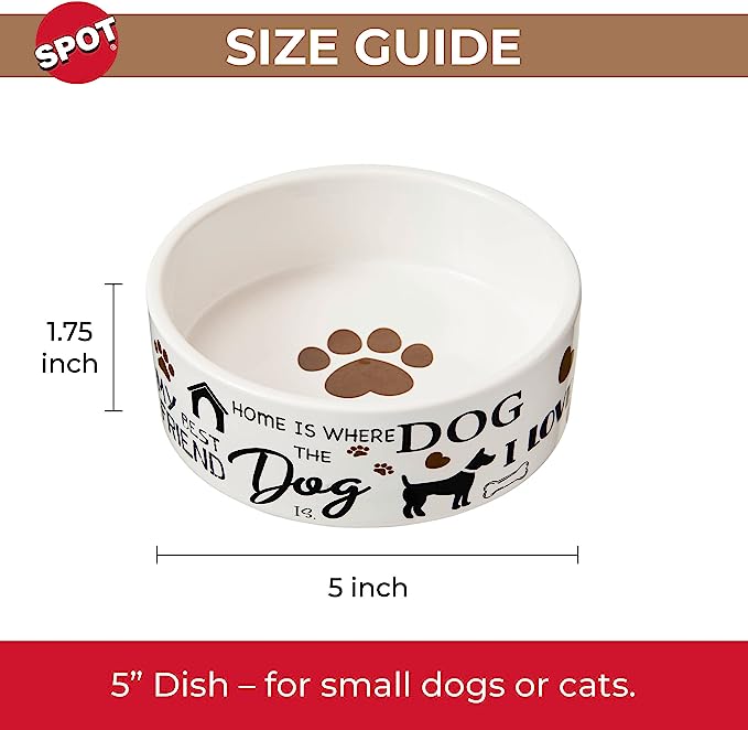 • POPULAR DESIGNS & PERFECT SIZES: Pick between a number of stylish designs and sizes, find something perfect for your dog our cat. 7” Dog Dish, perfect for Small and Medium Dogs, 5” Dog Dish – for even smaller dogs or cats, and a 6” oval cat dish – for cat food.