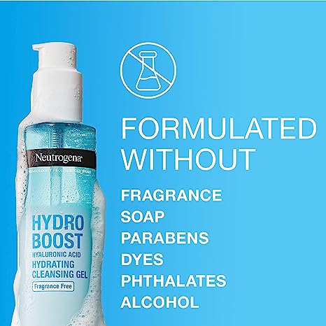 • 5.5-fluid ounces of Neutrogena Hydro Boost Fragrance-Free Hydrating Foaming Facial Cleanser Gel with hyaluronic acid, this formula is free from fragrance, soaps, parabens, phthalates, & alcohol & respects skin’s moisture barrier