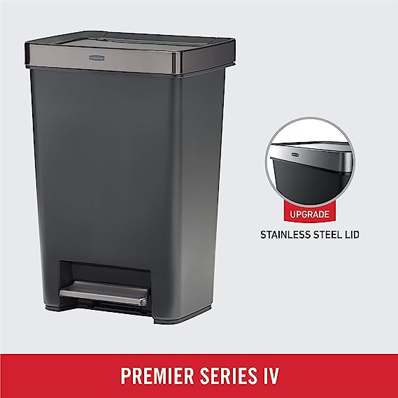- PREMIUM STANLESS-STEEL FINISHES: Charcoal stainless-steel lid and pedal blend seamlessly with kitchen applicances and home furnishings