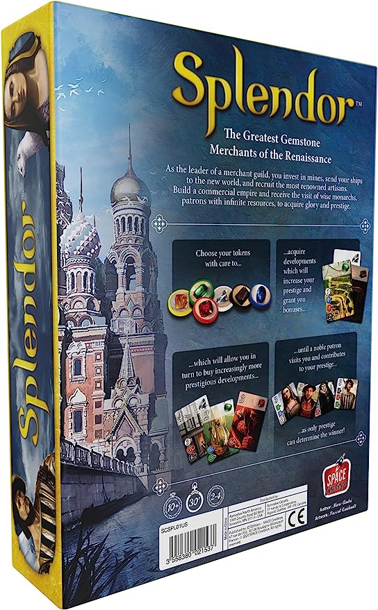 • COUNTLESS REPLAY OPPORTUNITES: Fast and intuitive, this strategy game is a fun game for game nights. The completely variable setup provides nearly limitless replayability. LOOKING FOR NEW ADVENTURES? Try Cities of Splendor Expansion (Note: this Expansion requires Base Game to play).
