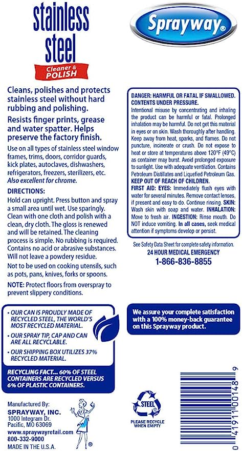 Sprayway SW148R Water-Based Stainless Steel Cleaner