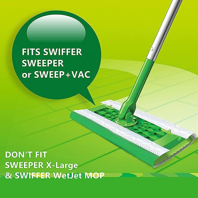 - Perfect Fit: Our disposable wet mop cloths are tailored to fit Swiffer Sweeper and Sweep+Vac, measuring 10.3” x 4.4”. However, they’re not compatible with Swiffer Sweeper X-Large, or Swiffer WetJet MOP.